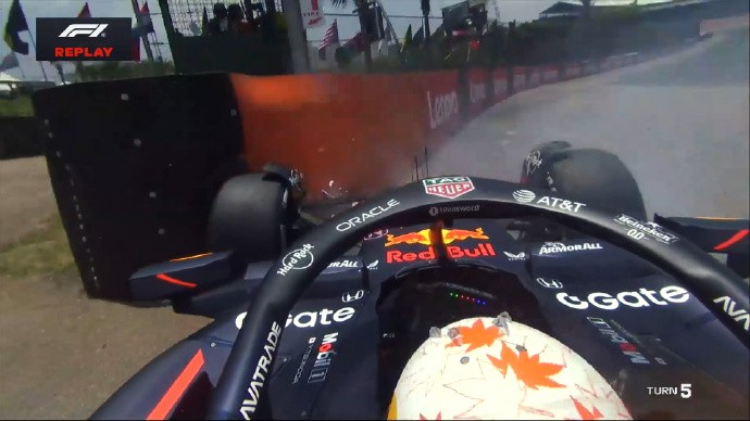 角田失控碰到5号弯护墙,前翼受损信富网,他驾驶赛车返回维修区
